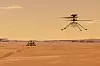 LANDER: Torsdag skal disse to lande på Mars. Den ene er en rover som skal kjøre på planeten. Den andre er et lite helikopter som skal fly i lufta på Mars.