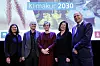 KLIMAKUR 2030: Rapporten Klimakur 2030 blir presentert og overrakt klima- og miljøminister Sveinung Rotevatn på Sentralen i Oslo. Fra venstre: Veg-direktør Ingrid Gahl Hovland, Avdelings-direktør i Landbruks-direktoratet Geir Grønningsæter, miljø-direktør Ellen Hambro, avdelings-direktør i NVE Anna Vera Skriverhaug, avdelings-direktør i Kystverket Sven Martin Tønnessen.