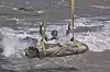 Dykkere festet tau til fire svære gjenstander. Tauet var festet til en kran. Så ble gjenstandene løftet opp av det gjørmete vannet.
