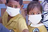 To barn på Samoa bruker munnbind for å beskytte seg mot meslingutbruddet. Foto: AP / NTB scanpix
